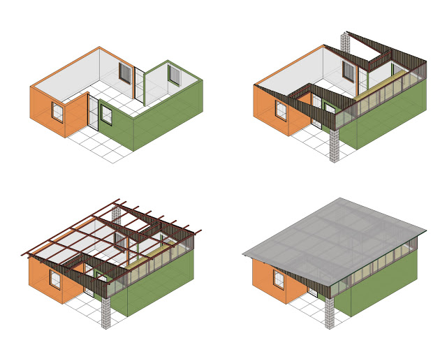 A few months after the studio ended the project was rethought and redesigned in a collaboration between DSGN AGNC‘s Quilian Riano and Estudio Teddy Cruz (Teddy Cruz and Cesar Fabela) with landscape assistance by Simon Bussiere and other support by the PARC foundation. What is shown below is the result of the redesign in 2010 and what Casas de la Esparanza is in the process of building.