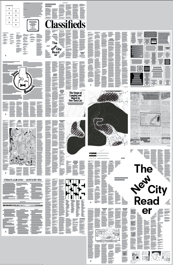 The New City Reader is a temporary newspaper that was published from October 6, 2010 to January 9, 2011 as part of the Last Newspaper exhibition at the New Museum