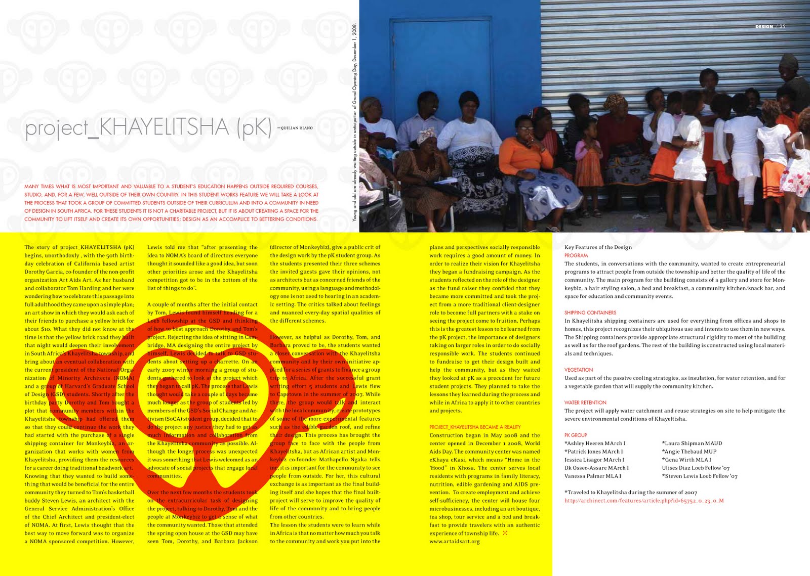 The article I wrote details a project a group of Harvard GSD students worked on in South Africa’s Khayelitsha township. The article was first published in Archinect. The article included a variety of interviews with the students that worked on the project and the client organizations: Art Aids Art and Monkeybiz.